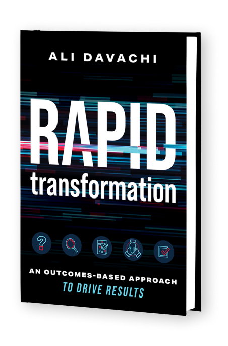 By simply filling out your information, you'll have a chance to win our grand prize and receive a free digital copy of "RAPID Transformation: An Outcomes-Based Approach to Drive Results," written by our very own CEO and business transformation expert, Ali Davachi.